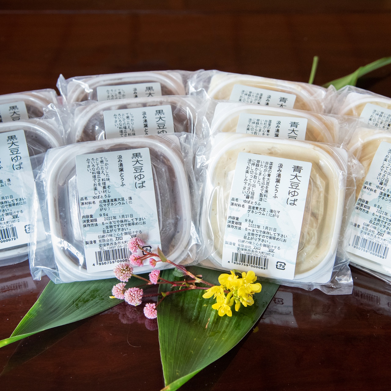 国産の黒大豆、青大豆をふんだんに使ってゆば豆腐にしました。